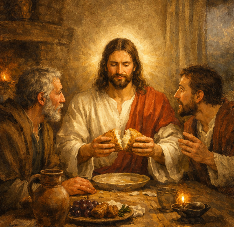 - Discípulos de Emaús reconhecem Jesus ao partir o pão (Lc 24,13-35).